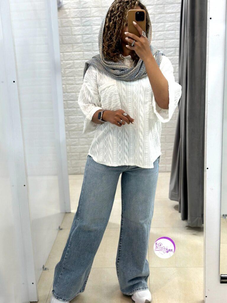 ۳)جلیقه یا کت کوتاه: برای ظاهری مدرن و شیک، میتوانید شلوار واید لگ خود را با یک جلیقه یا کت کوتاه ست کنید. این ترکیب، استایلی رسمی و در عین حال راحت به شما میدهد.
