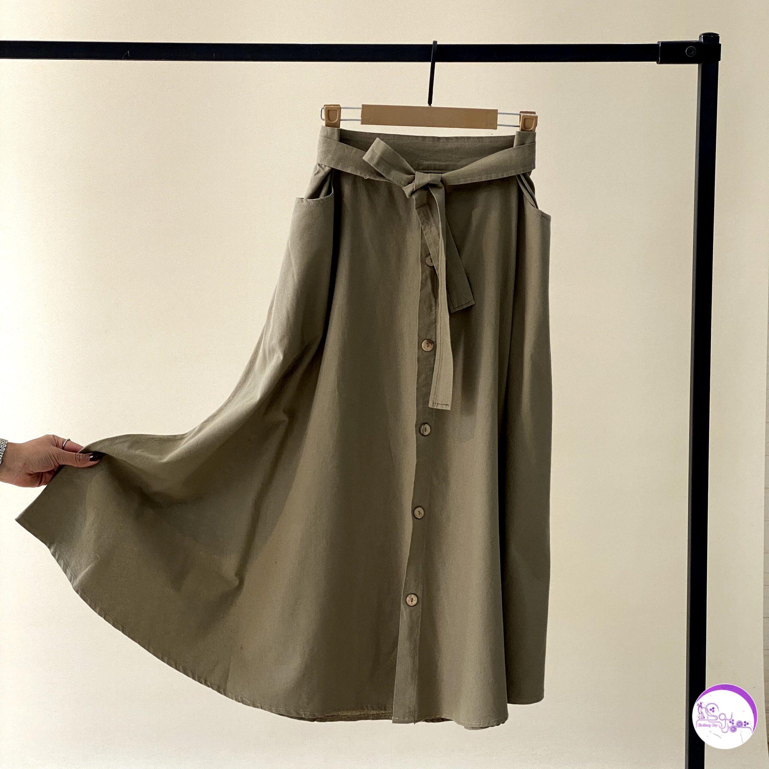 دامن لینن دکمه ای