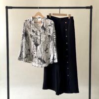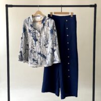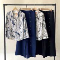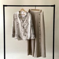 ☆ روی شلوار دکمه های چوبی و پشت کمر شلوار کش کار شده است ، قواره ی این مدل آزاد است .
