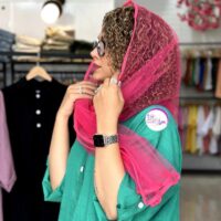 جنس پارچه : توری ( دور شال کاملا گان دوزی شده )