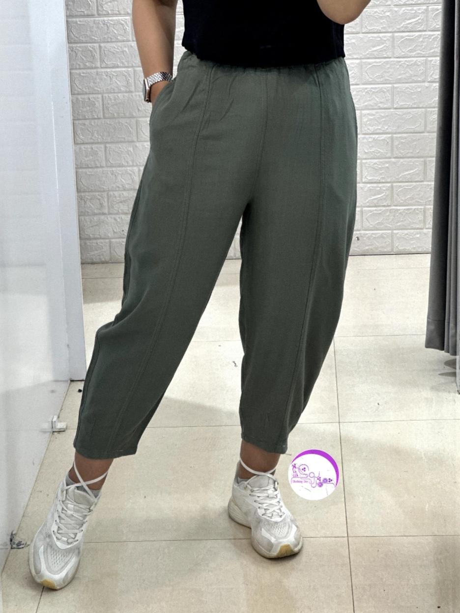 شلوار بالن لینن زیتونی