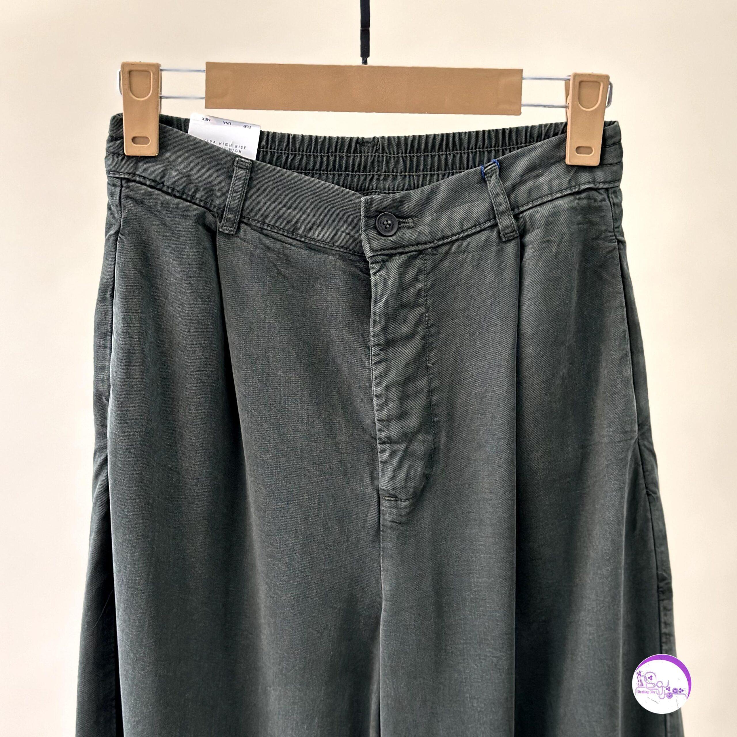 شلوار بگ سیلک سبز لجنی