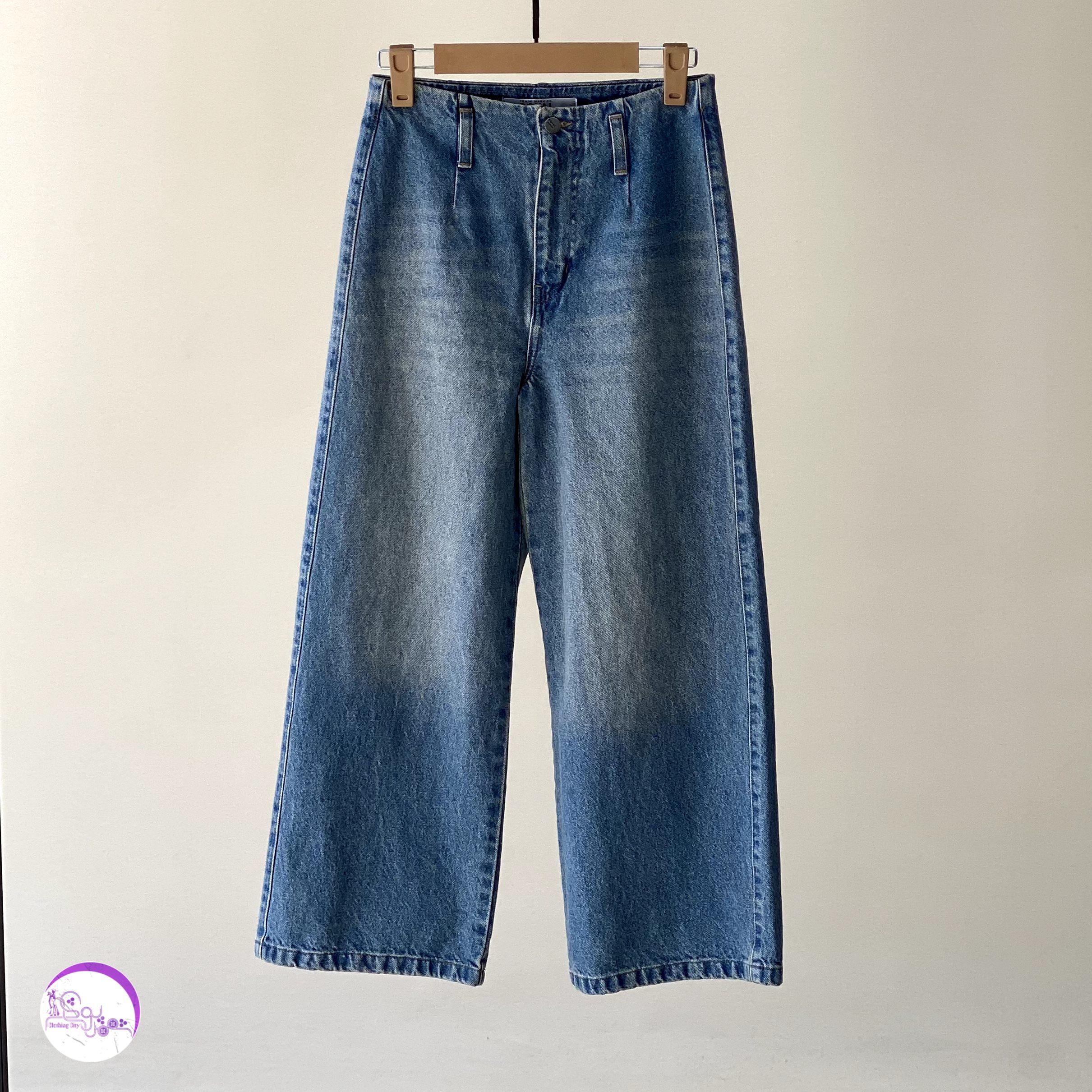 شلوار جین واید لگ آبی وسط (کمرساده)
