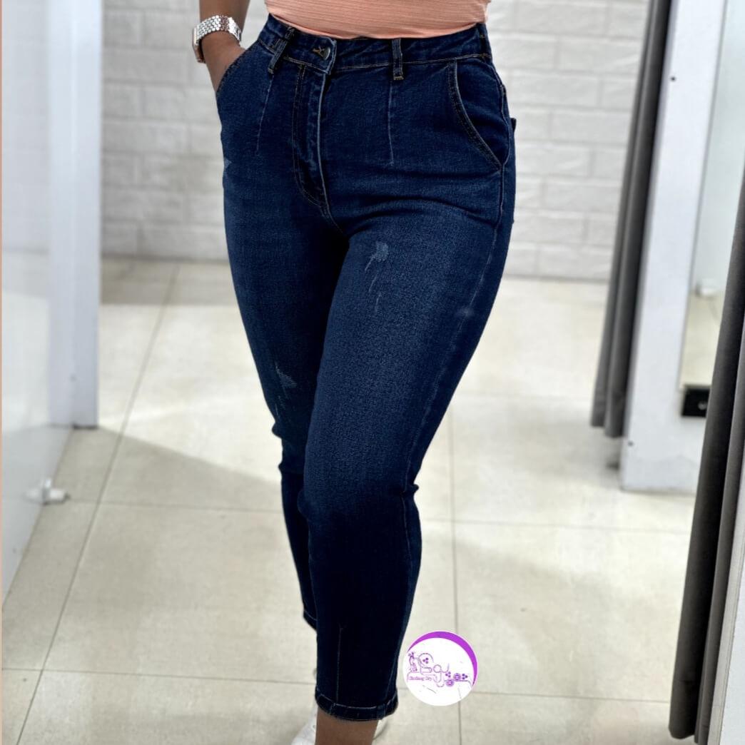 شلوار مام فیت آبی تیره