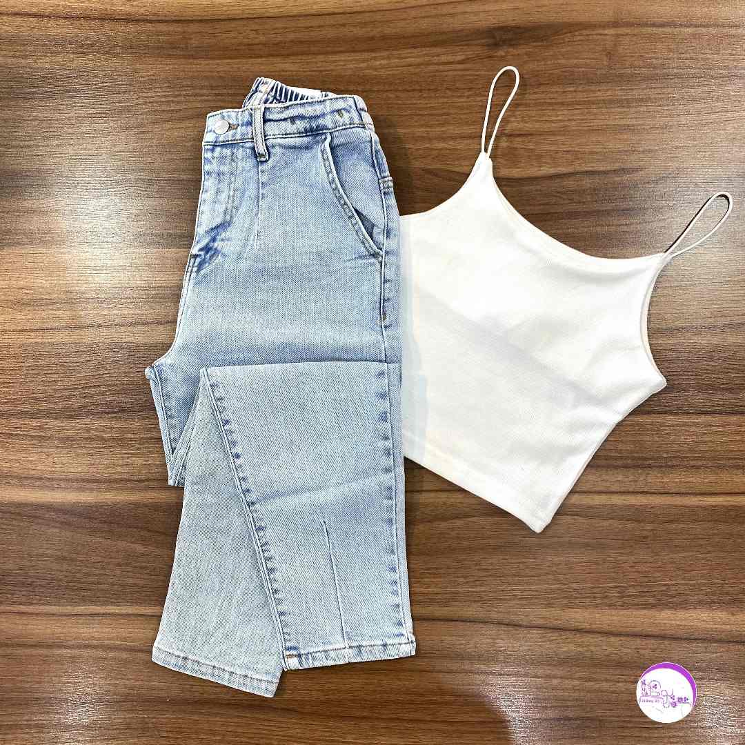 شلوار مام فیت آبی روشن