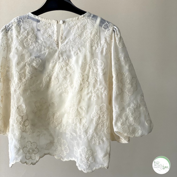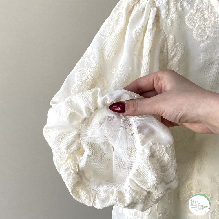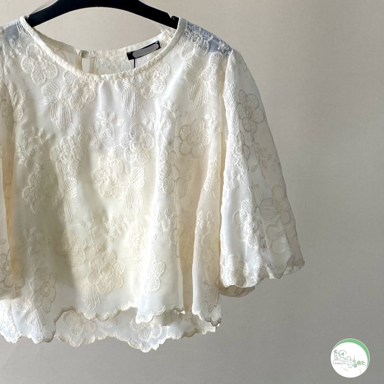 جنس پارچه : گیپور ( یک تاپ نیم تنه از جنس کرپ متصل به شومیز می باشد . )