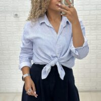 شومیز راه راه آبی کمرنگ