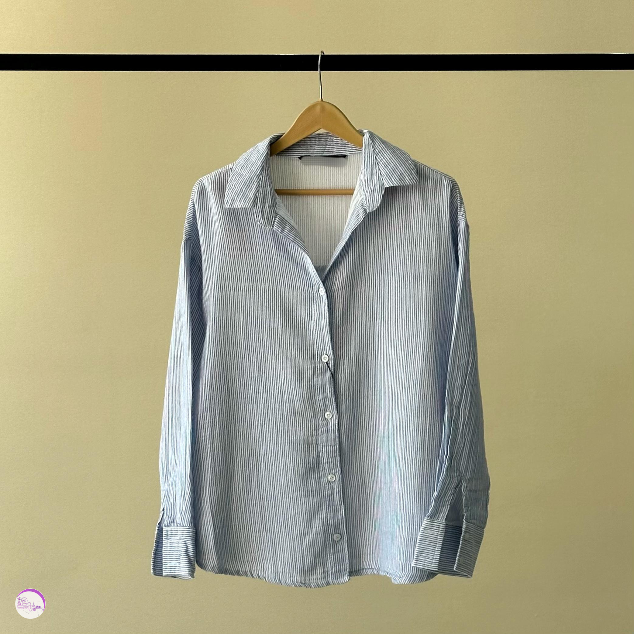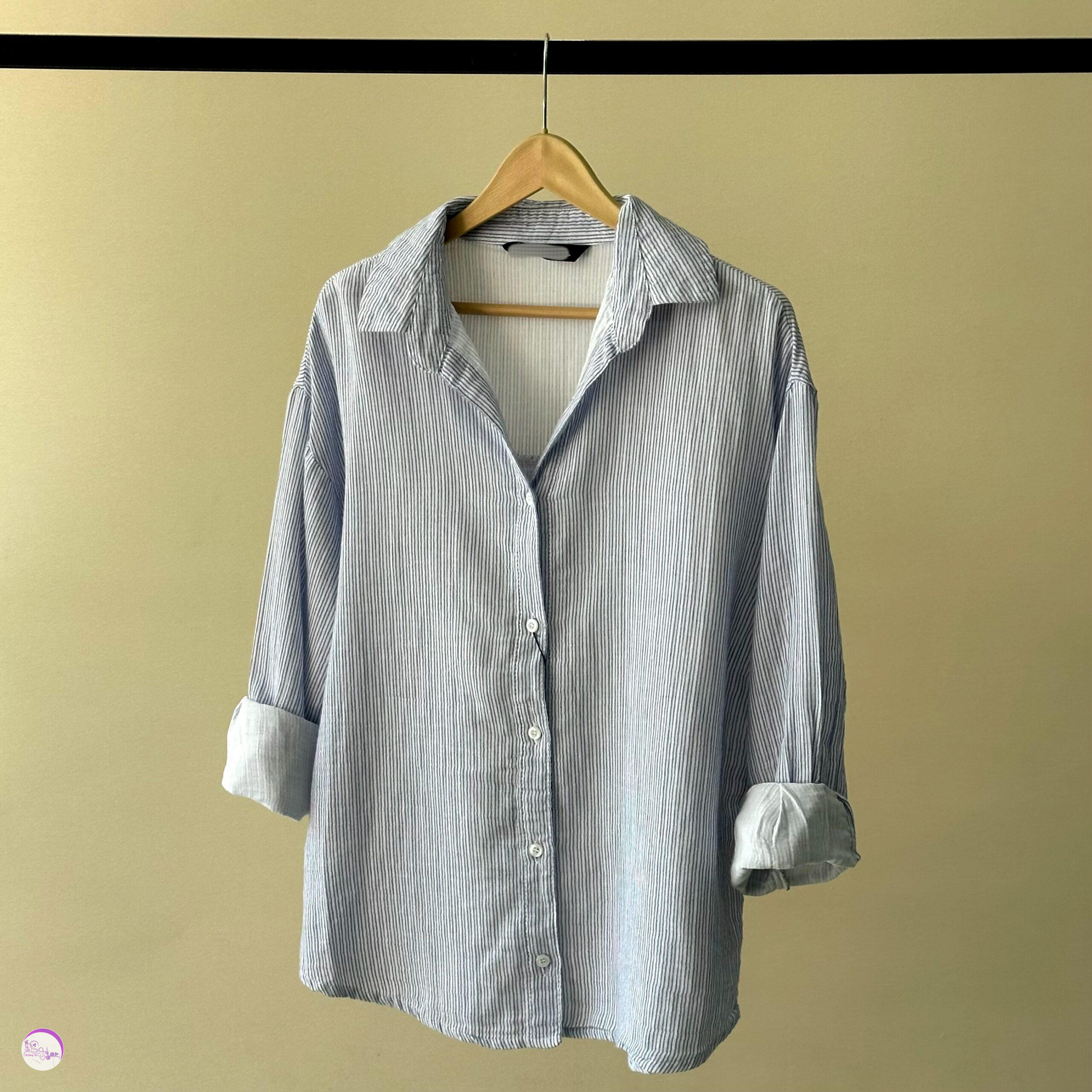 شومیز راه راه آبی کمرنگ