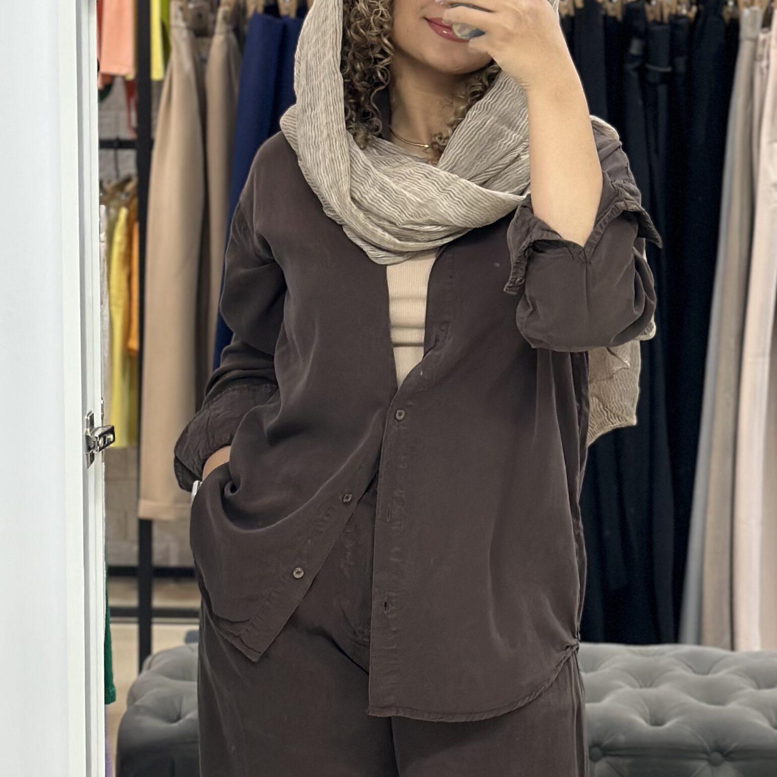 شومیز سیلک قهوه ای سوخته Free