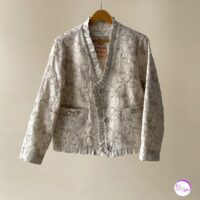 جنس پارچه : لینن ( ترکیب با ارگانزا و پولک )