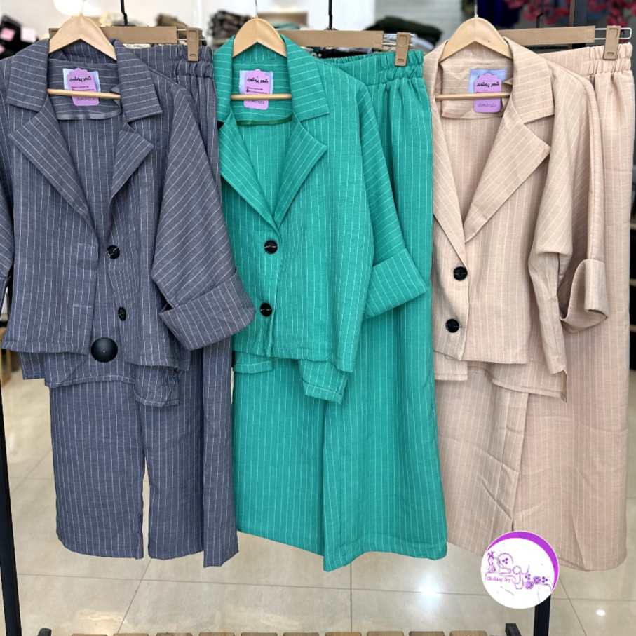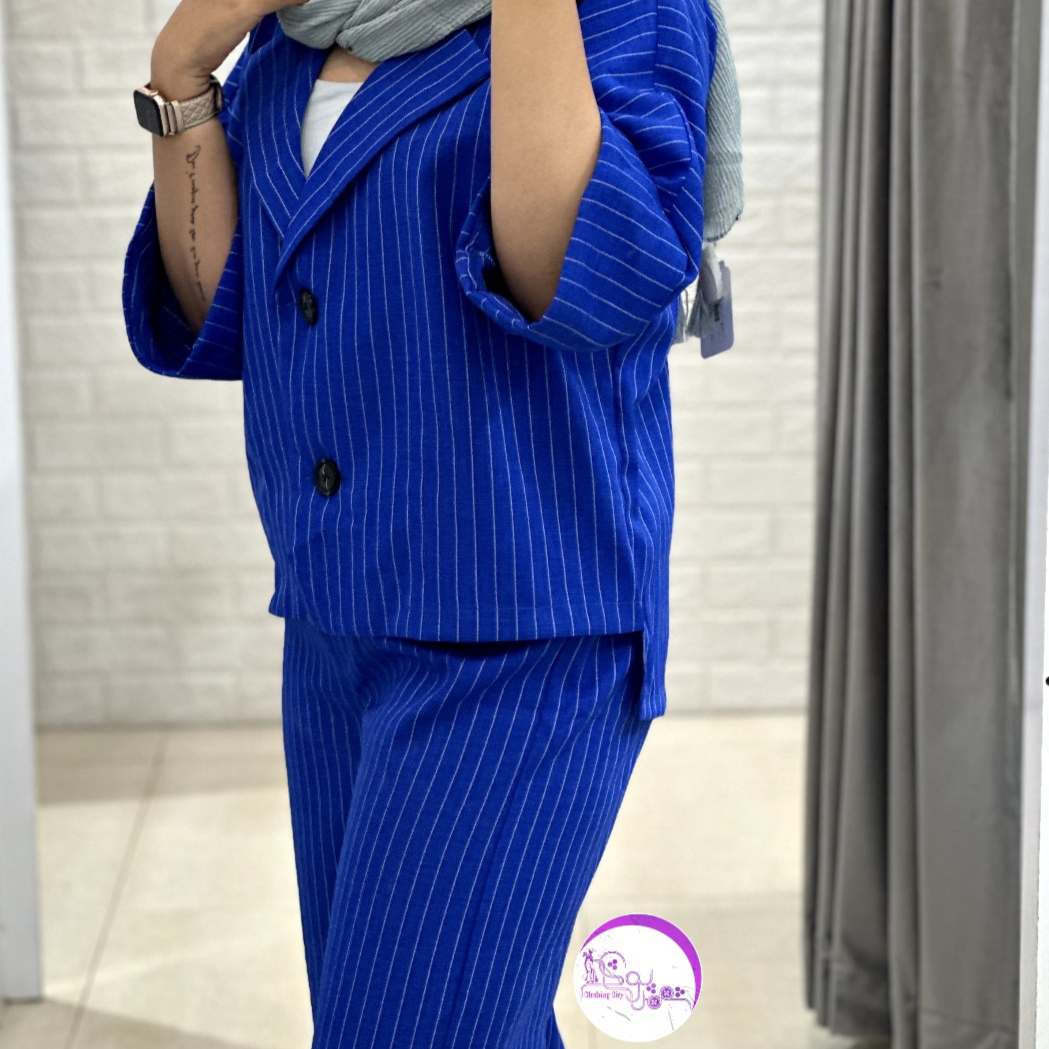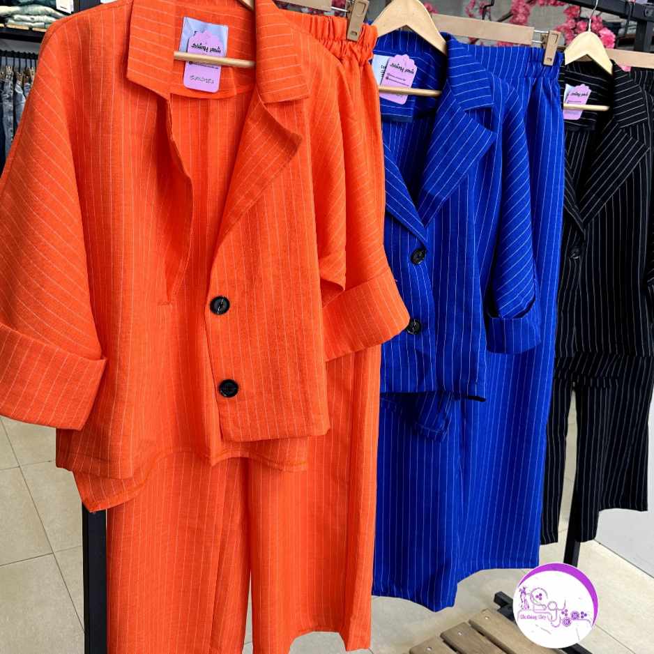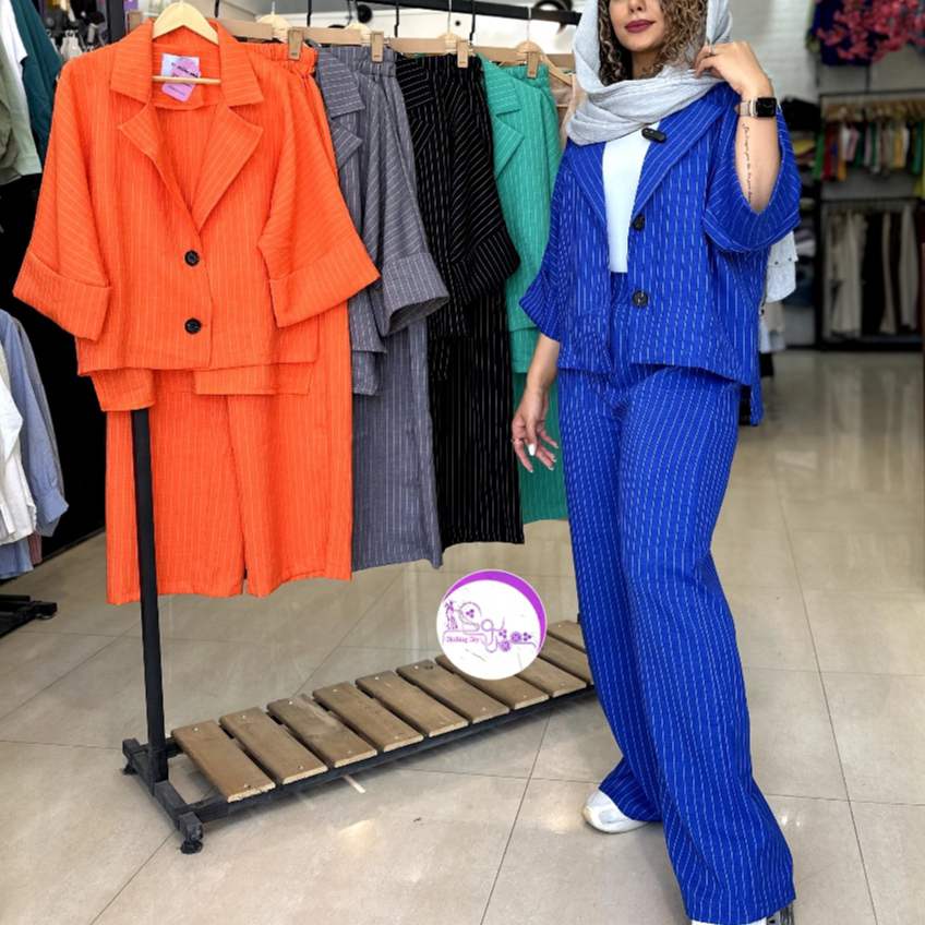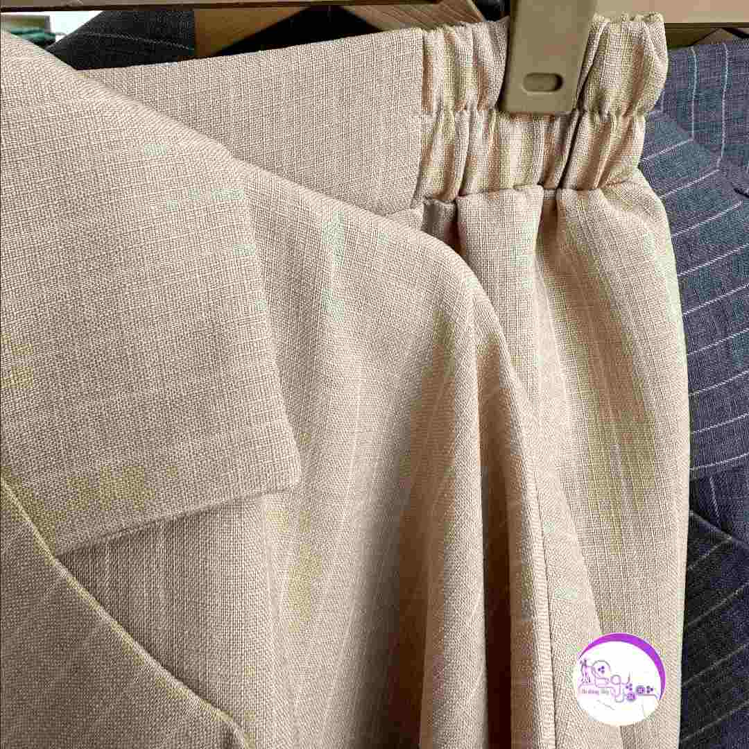 ☆ دکمه های کت کاربردی هستند و بسته می شوند ، پشت کمر شلوار کش خورده است .