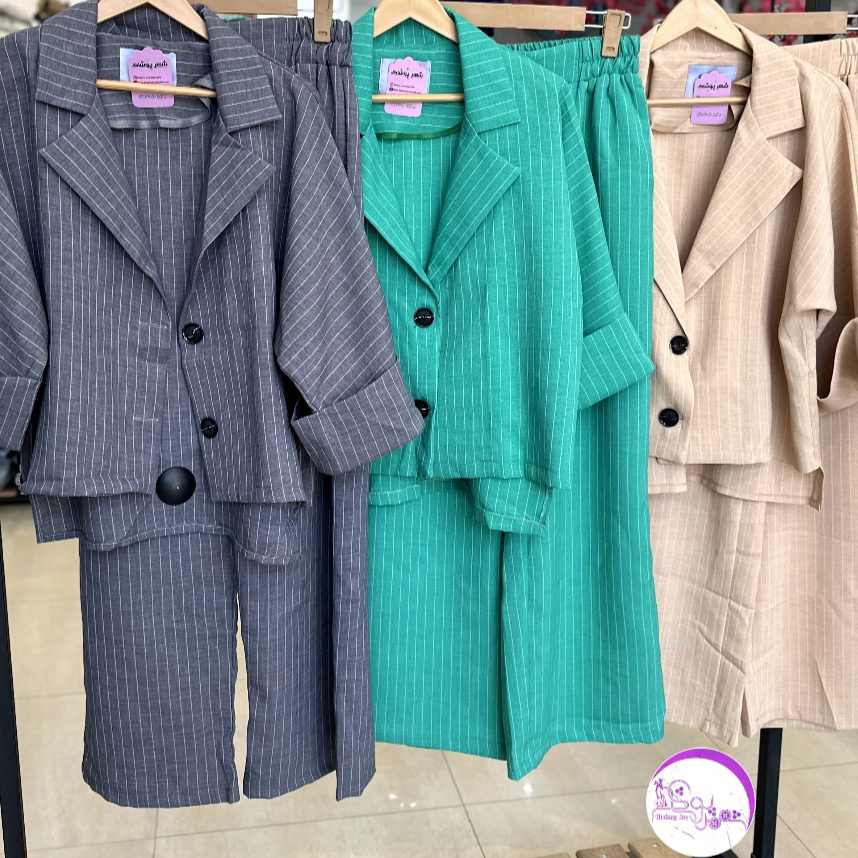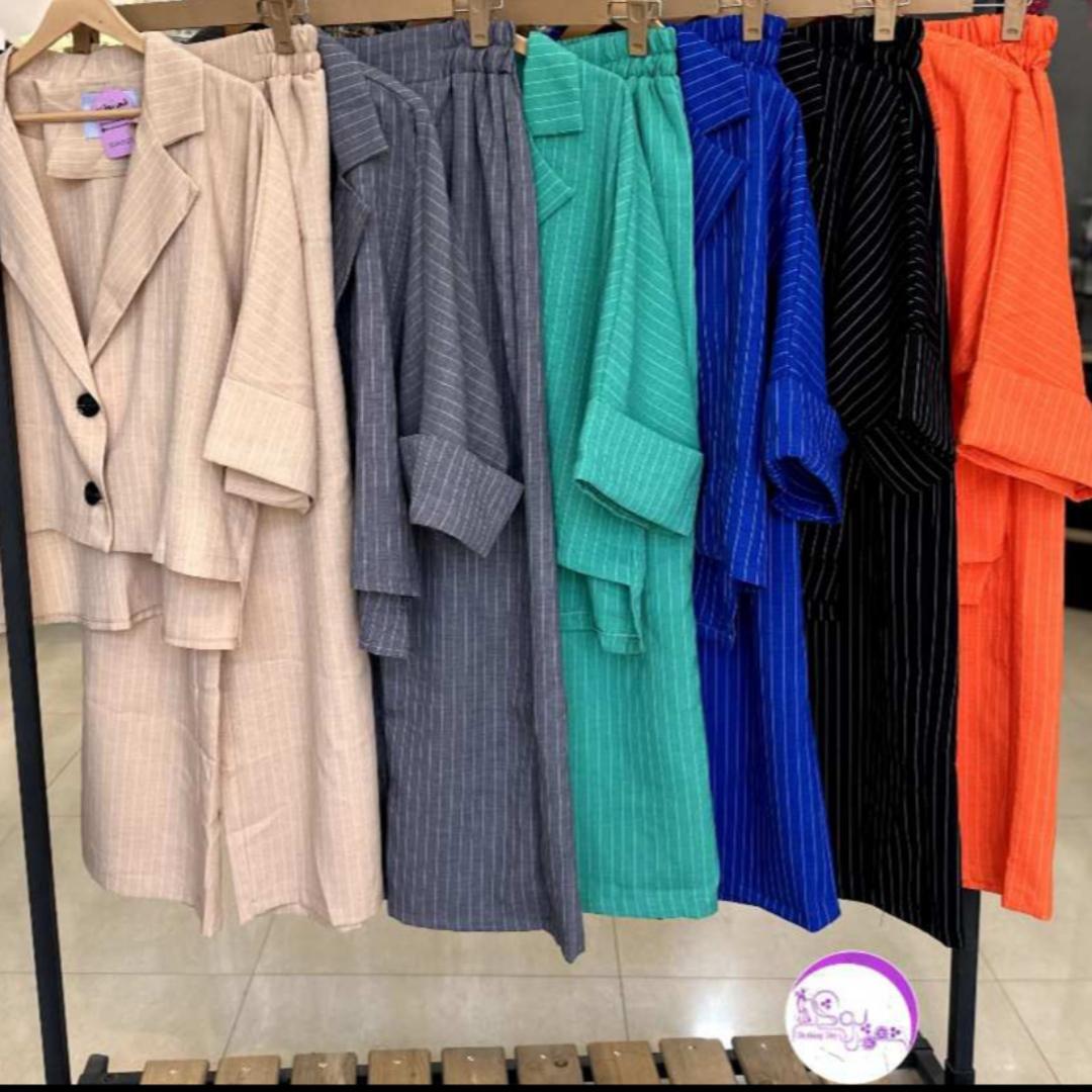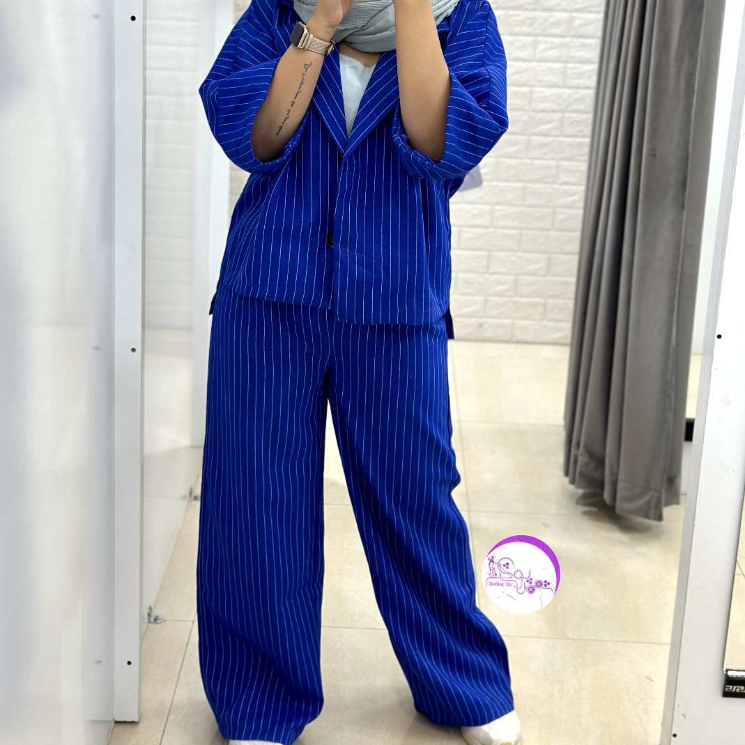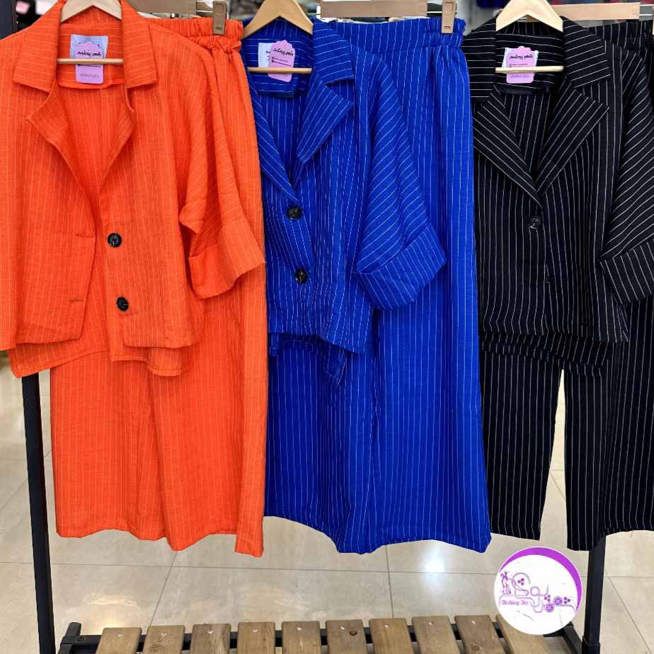☆ دکمه های کت کاربردی هستند و بسته می شوند ، پشت کمر شلوار کش خورده است .