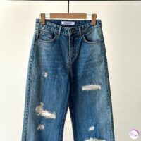 جنس پارچه : جین سنگشورشده ( بدون کشسانی) ، زیر زاپ ها پوشیده است .