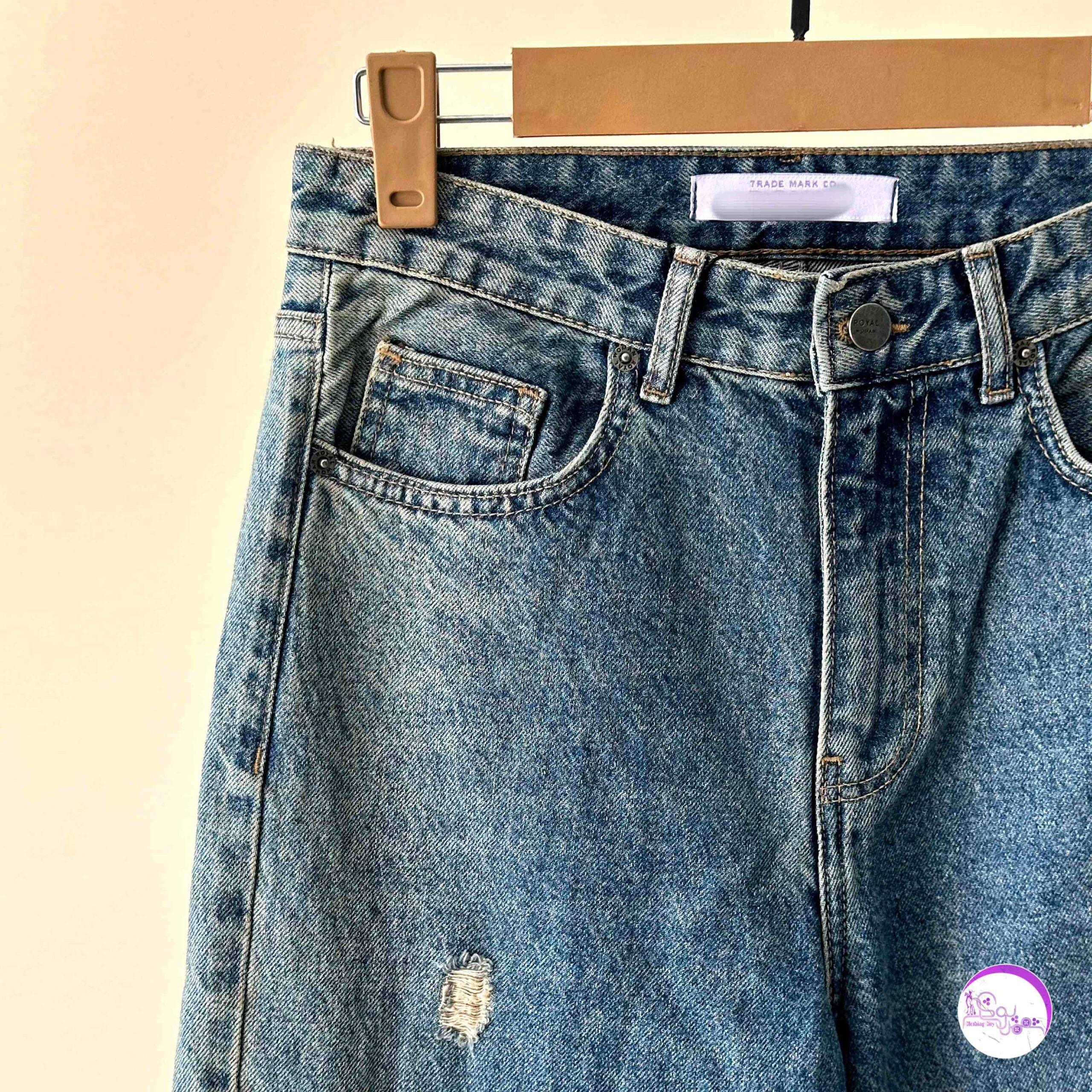 جنس پارچه : جین سنگشورشده ( بدون کشسانی) ، زیر زاپ ها پوشیده است .